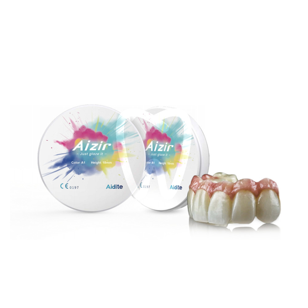 Dysk cyrkonowy Aidite AiZir 98×14 mm to wielowarstwowy dysk z tlenku cyrkonu nowej generacji, przeznaczony do wykonywania szerokiego zakresu uzupełnień protetycznych w technologii CAD/CAM.