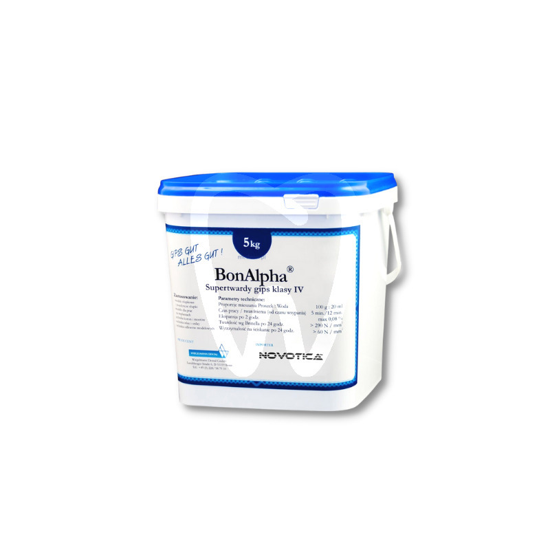 Supertwardy gips klasy IV BonAlpha, dostępny w wiaderku 5 kg, w kolorze golden brown.