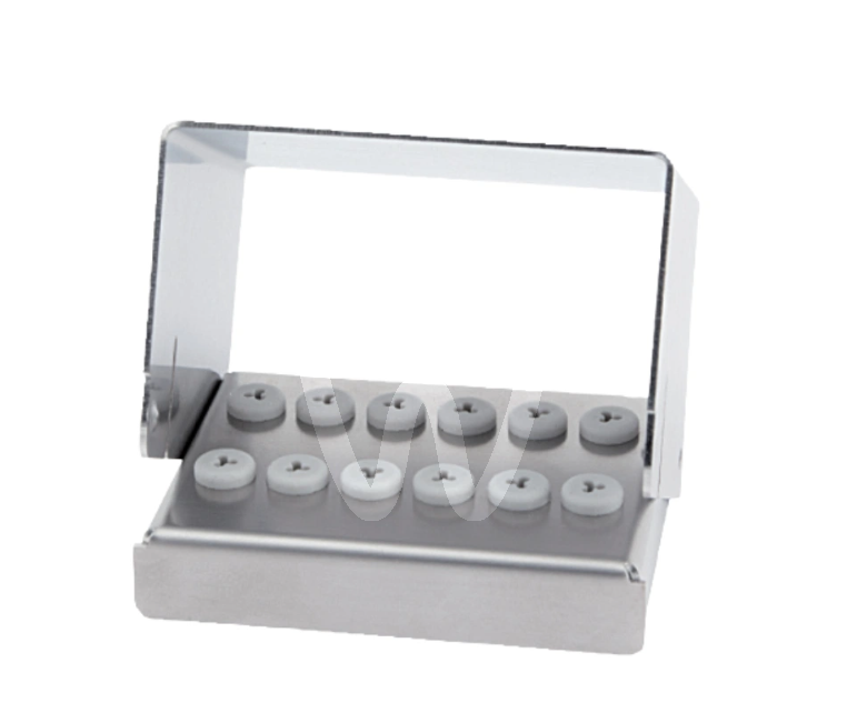 Kompaktowy i higieniczny stojak JOTA BS12S zaprojektowany do bezpiecznej organizacji wierteł turbinowych i kątnicowych, idealny do codziennej pracy w gabinecie stomatologicznym.