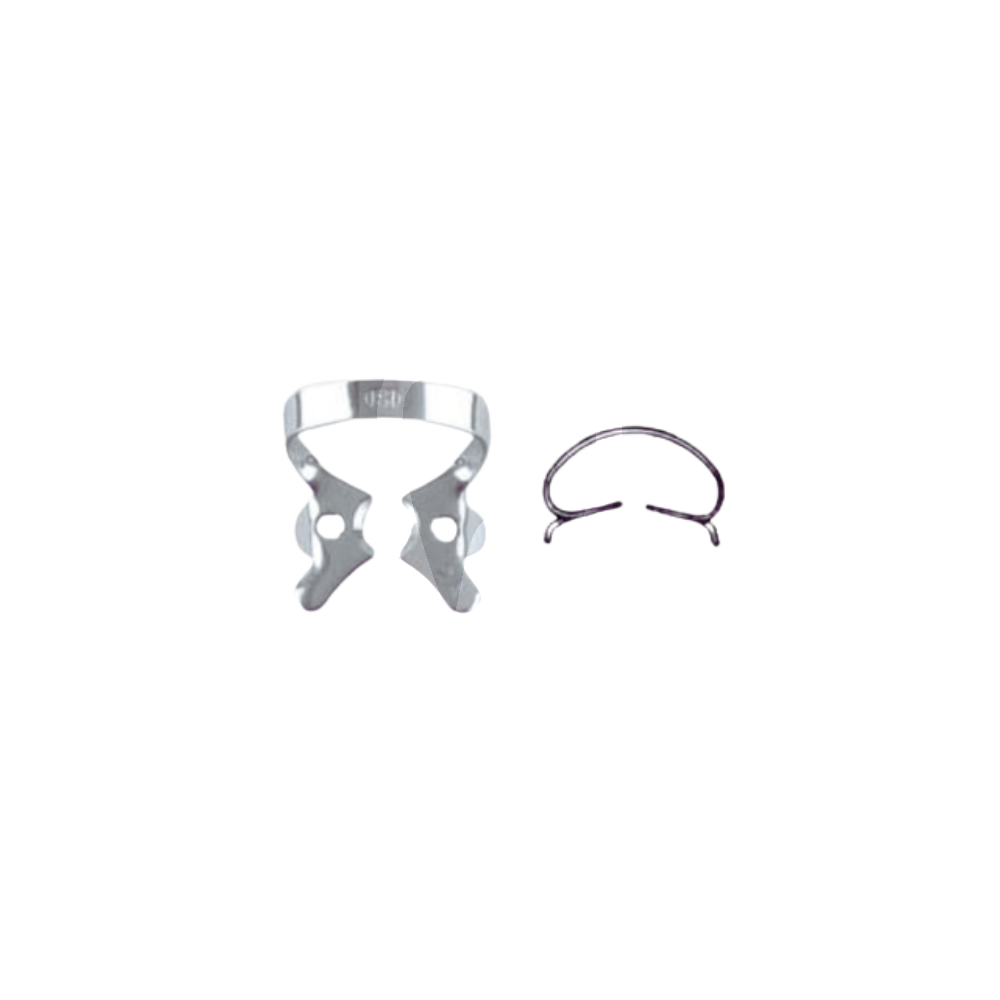 Klamra 2A na przedtrzonowce ze skrzydełkami to wysokiej jakości stalowa klamra do koferdamu, przeznaczona do stabilnego mocowania i szczelnego uszczelnienia koferdamu na zębach przedtrzonowych, zapewniająca suche i izolowane pole zabiegowe.