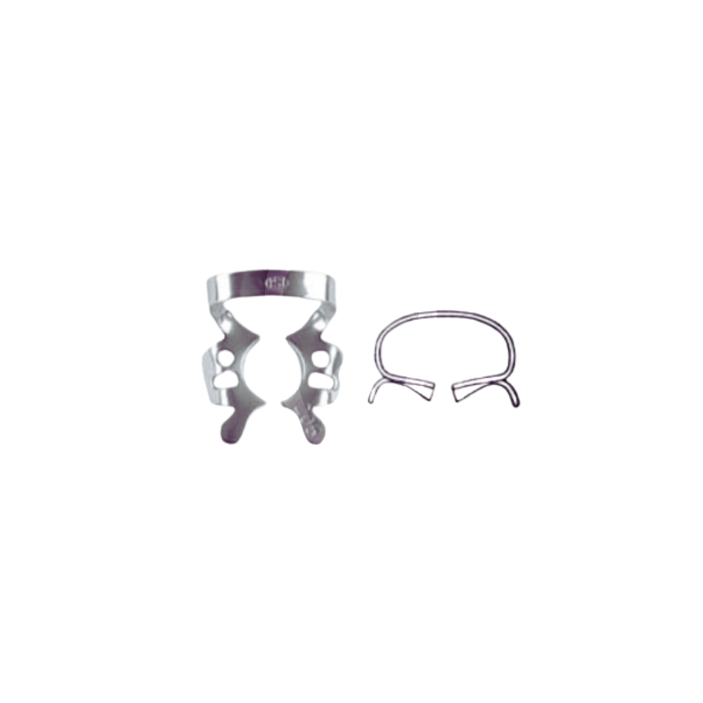Klamra 205 na trzonowce ze skrzydełkami to stalowa klamra do koferdamu przeznaczona do stabilnego mocowania i szczelnej izolacji koferdamu na zębach trzonowych, zapewniająca suche i kontrolowane pole zabiegowe.