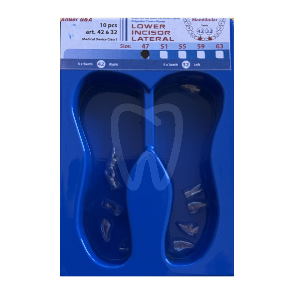 Precyzyjne kształtki poliestrowe Anger to niezawodne narzędzie w rekonstrukcji dolnych siekaczy bocznych. Gładka powierzchnia i odpowiednia sztywność materiału sprzyjają uzyskaniu wysokiej jakości wypełnień o naturalnej estetyce.