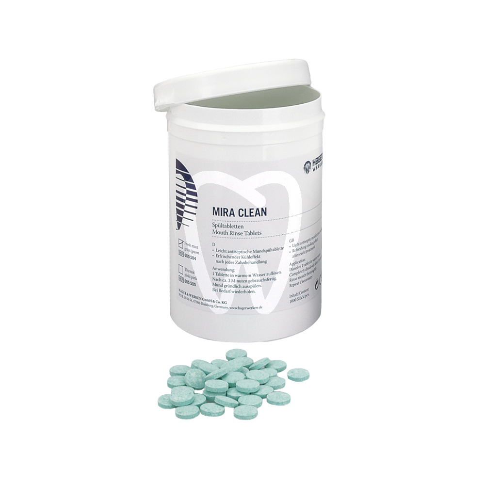 Mira Clean to miętowe tabletki wykorzystywane do płukania jamy ustnej, które zapewniają odświeżenie i działanie antyseptyczne w prosty sposób.