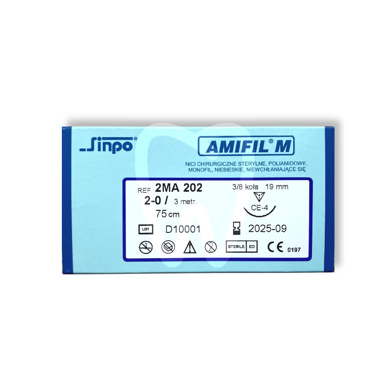 Sterylne, niewchłanialne nici chirurgiczne w postaci monofilu barwionego na niebiesko.