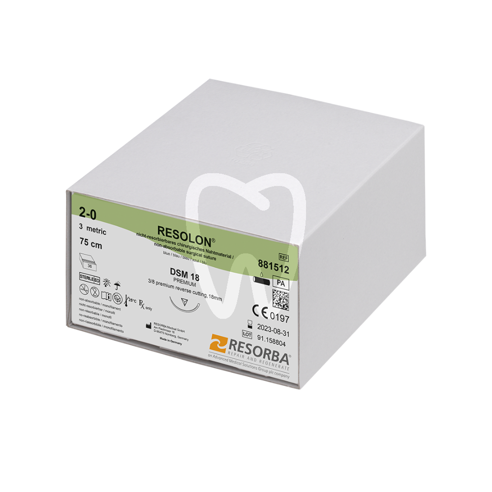 Nici chirurgiczne RESOLON firmy Resorba to syntetyczne, nieresorbowalne nici monofilamentowe przeznaczone do zabiegów stomatologicznych, służące do czasowego łączenia i stabilizacji tkanek miękkich jamy ustnej po procedurach chirurgicznych, implantologicznych i periodontologicznych, zapewniające precyzyjne prowadzenie szwu, bezpieczeństwo gojenia oraz wysoki komfort pracy lekarza.