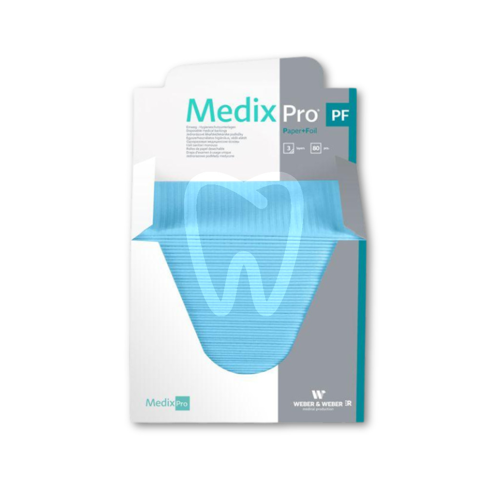 Jednorazowe bibułowo-foliowe podkłady medyczne w formie luźnych arkuszy, pakowane w pudełkach. Dostępne w kolorze niebieskim.