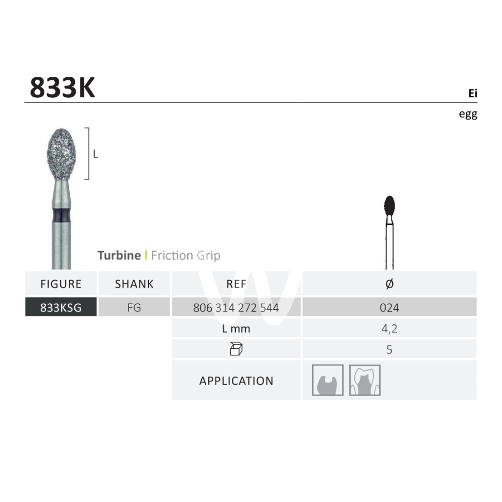 Wiertła diamentowe Jota [833KSG] w jajowatym kształcie, dostępne w opakowaniu zawierającym 5 sztuk produktu.