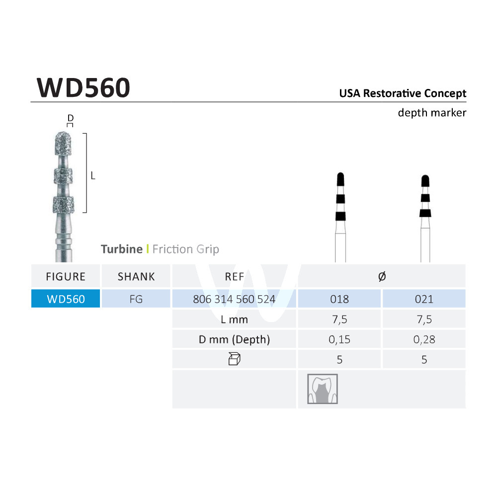 Wiertła diamentowe niebieskie na turbinę z końcówka pracującą w postaci znacznika głębokości.